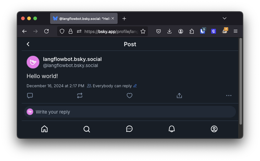 Given all that, it's only natural to want to connect clever bots to social media. In this post we'll build a small TypeScript application that creates a Bluesky bot powered by Langflow.