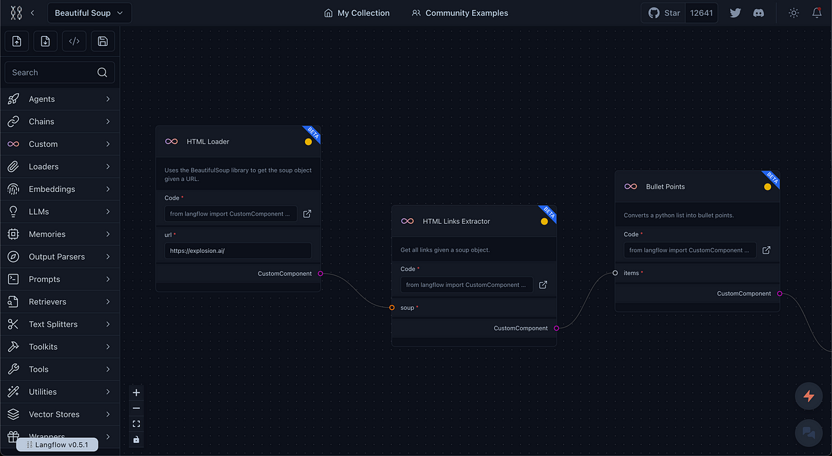 HTML Loader: The HTML Loader custom component uses the BeautifulSoup library to retrieve the soup object from a given URL. This allows for easy extraction of relevant information from HTML documents.