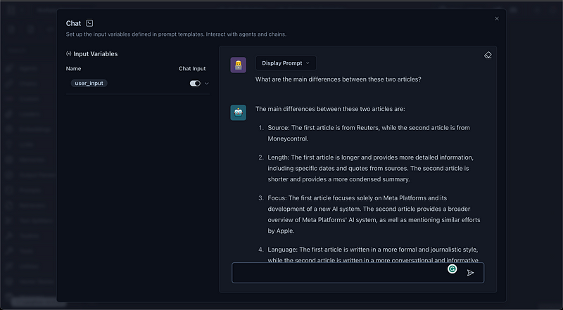 For small amounts of text, the prompt template is enough to enable users to retrieve data from various sources without relying on a vector store. In this project, input data comes from WebBaseLoader components, but you can imagine different loader types as well, with templates serving a diversity of purposes.