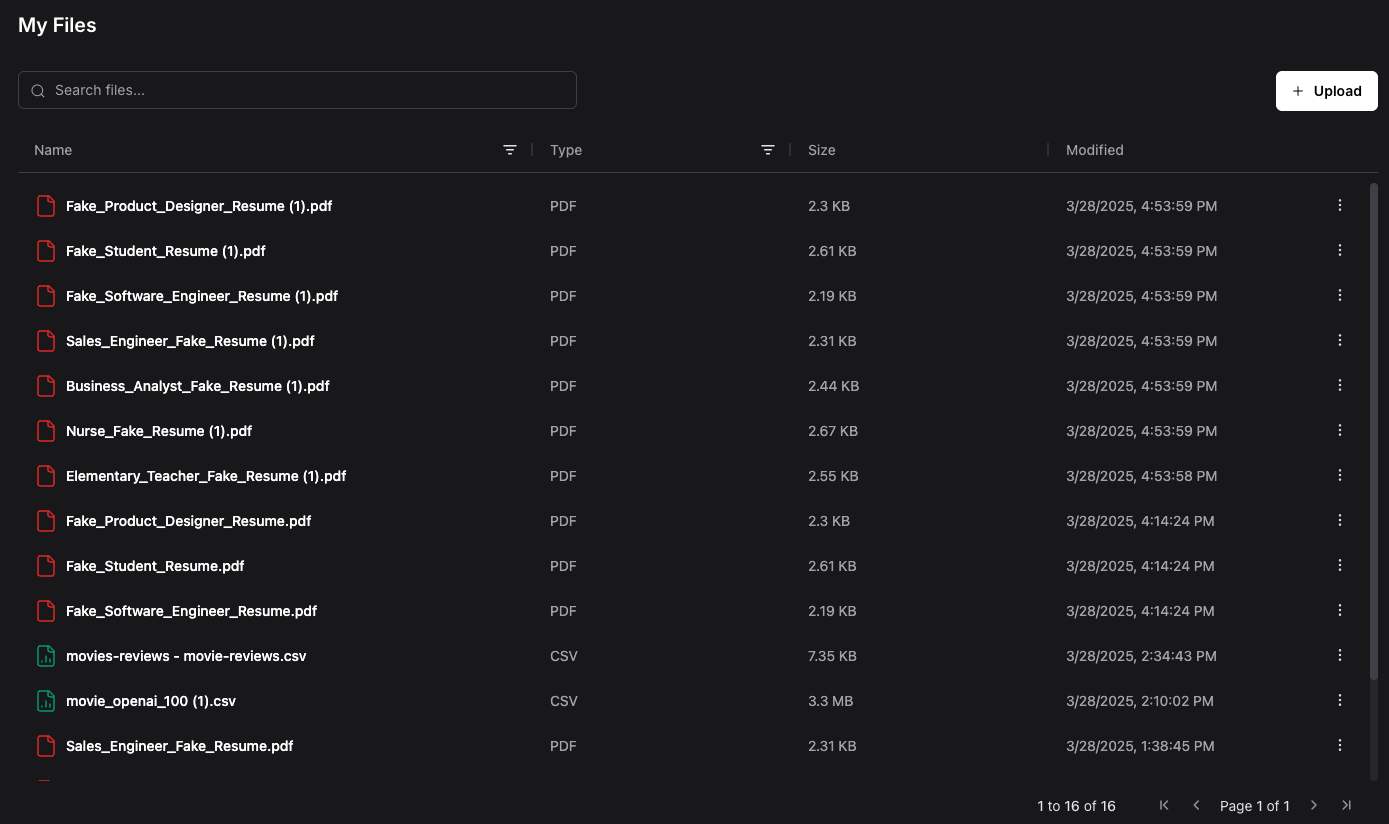 With the new file management system, you can now access uploaded files across multiple flows. This eliminates the frustration of repeatedly uploading the same files for different workflows or testing scenarios. Your documents remain accessible across sessions, creating a more cohesive and efficient development environment.