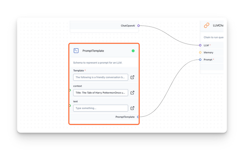 You can also use documents or output parsers as input values. By plugging them into variable handles, they’ll disable and feed that input field.