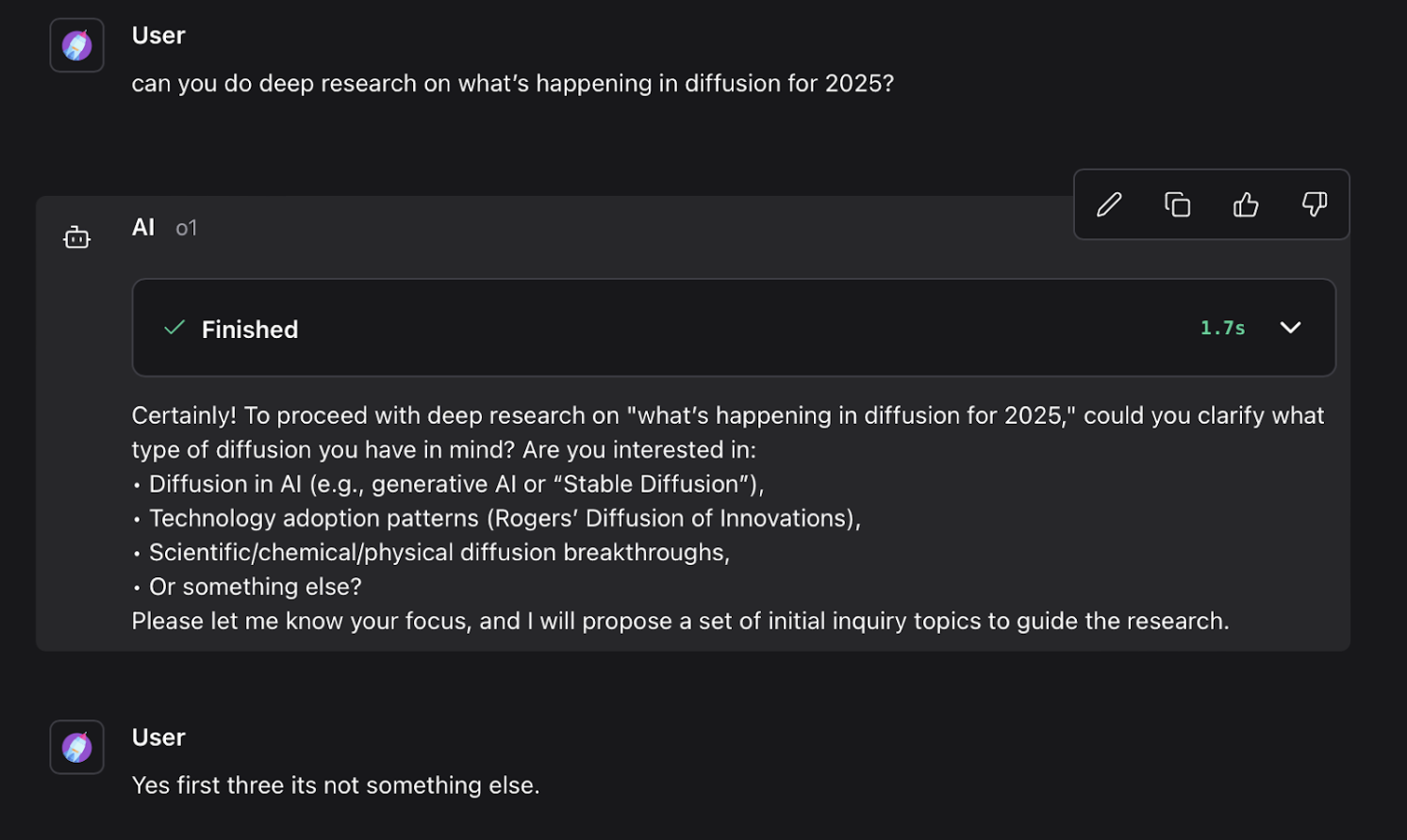 The research orchestration agent begins by asking clarifying questions to better understand the user’s intent. Once these questions are answered by the user, it decomposes the query into smaller, focused subtopics. This approach ensures depth and structure, allowing the agent to cover all relevant aspects instead of producing a shallow, one-shot answer.
