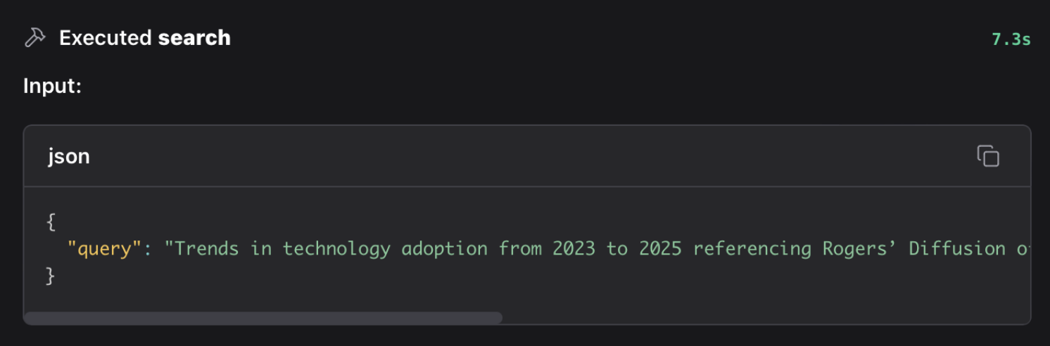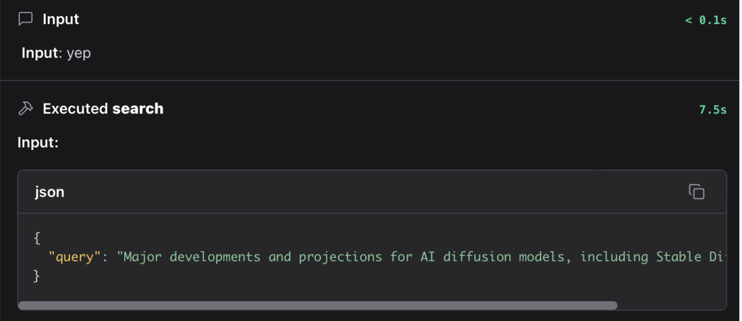 | Image: First call made by our research agent to understand the latest developments in the topic. |